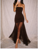 CHATEAU QUEEN MESH FLARE LUXE BROWN DRESS