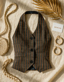 NASTY KARMA PLAID HALTERNECK VEST TOP
