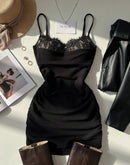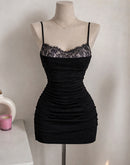 SUMMER FLING PADDED LACE DETAIL BLACK DRESS