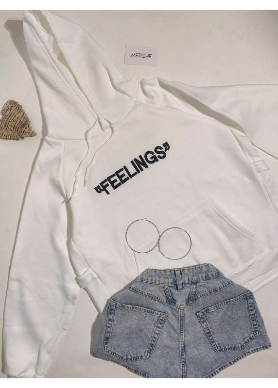 FEELINGS EMBROIDERED WHITE OVERSIZED HOODIE
