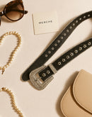 BUCKLE UP BUTTERCUP DIAMOND EMBELLISHED BLACK BELT