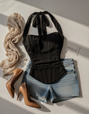BEFORE HE CHEATS BONING BLACK HALTERNECK CORSET
