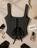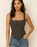 FIERCE FRAME CORSETED LUXE GREY TOP