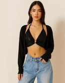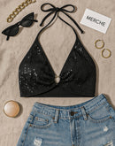 FLASHLIGHTS SEQUIN HALTERNECK BIKINI BLACK TOP