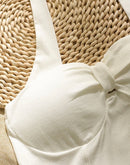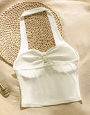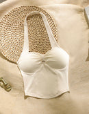 GODDESS ALERT PADDED BEIGE HALTERNECK TOP