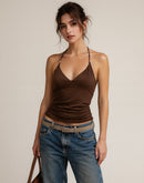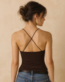 JUST WANNA CHILL BEADED CROSSBACK BROWN TOP