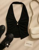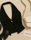 OFFSTAGE GLAM BEADED BLACK HALTERNECK TOP