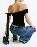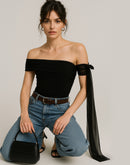 ON SCREEN ROMANCE DRAPE OFF-SHOULDER TOP
