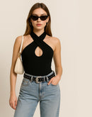 OUT AND ABOUT BLACK HALTERNECK BODYSUIT