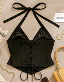 PROTEST WITH ME LUXE BLACK HALTERNECK TOP