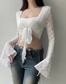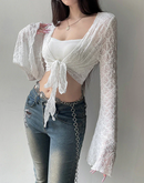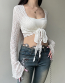 REALITY CHECK LACE SHEER TIE-UP TOP