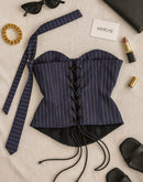 RUN THE WORLD LACE AND STRIPED CORSET WITH PENCIL SCARF