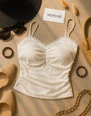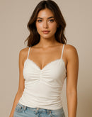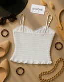 SPRING CALLS PADDED MESH WHITE CAMI TOP