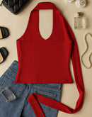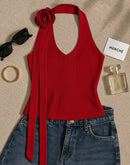 STAYCATION LIFE ROSE APPLIQUE LUXE RED HALTERNECK TOP