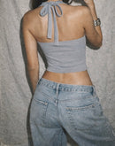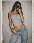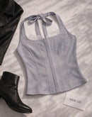 YOU CARE LACE DETAIL CORSETED HALTERNECK TOP