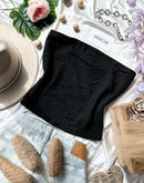 YOU HANG UP TEXTURED BLACK BANDEAU TOP
