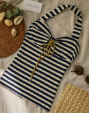 HEARTBREAK CENTRAL STRIPED HALTERNECK TOP