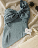 STALKER ALERT DENIM ASYMMETRICAL STRAPLESS TOP