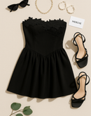 WINTER DATE APPLIQUE FLARE BANDEAU DRESS